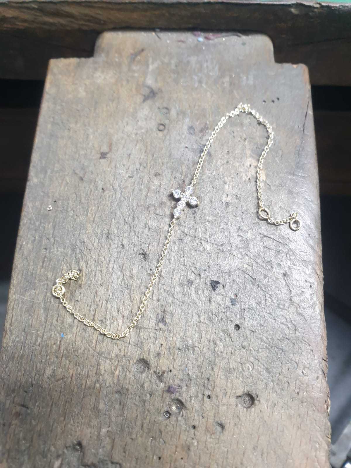 • Realistic picture of Solid Gold Cross Bracelet with Natural Diamonds – Elegant Design & Perfect Gift