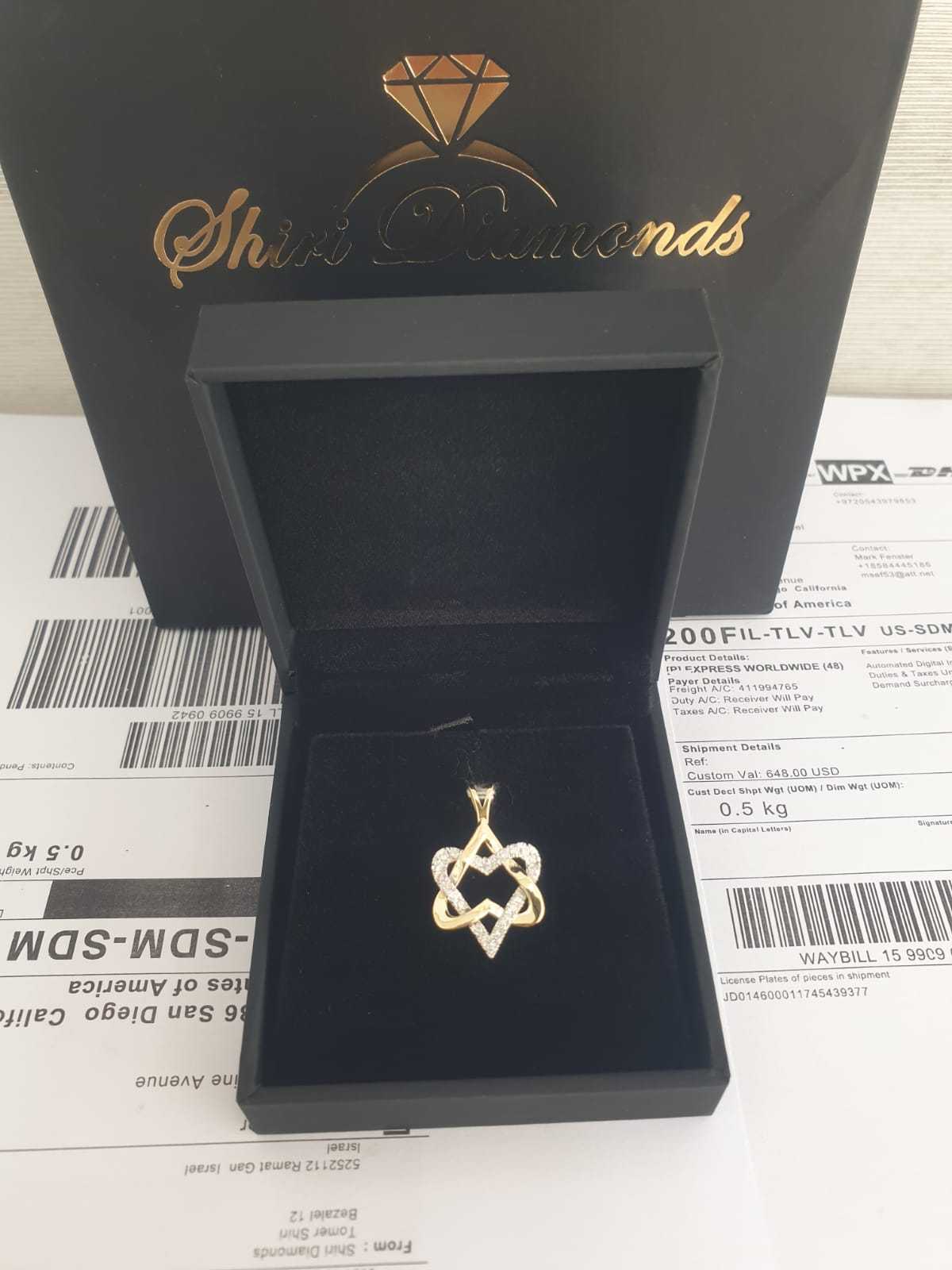 ✔ Interlocking hearts in white and yellow gold forming a Star of David