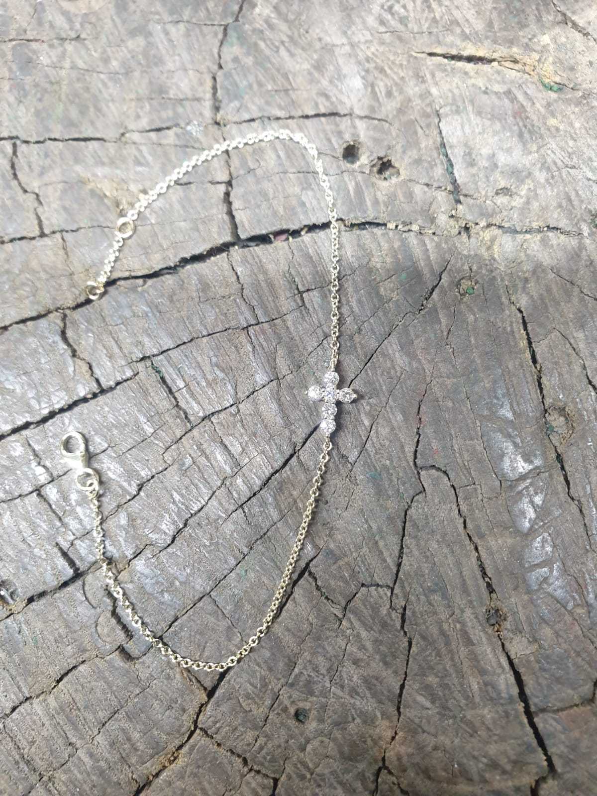 • Realistic picture of Solid Gold Cross Bracelet with Natural Diamonds – Elegant Design & Perfect Gift