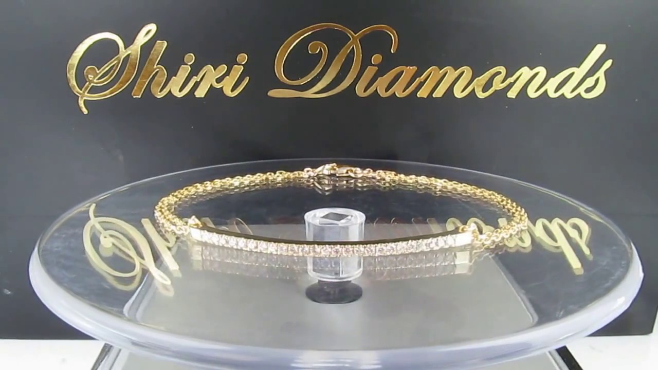 צפו בצמיד יהלומים עדין ויוקרתי משובץ בשורה של 25 יהלומים בתנאים אמיתיים, כולל הברק, הפרופורציות ואיכות הגימור