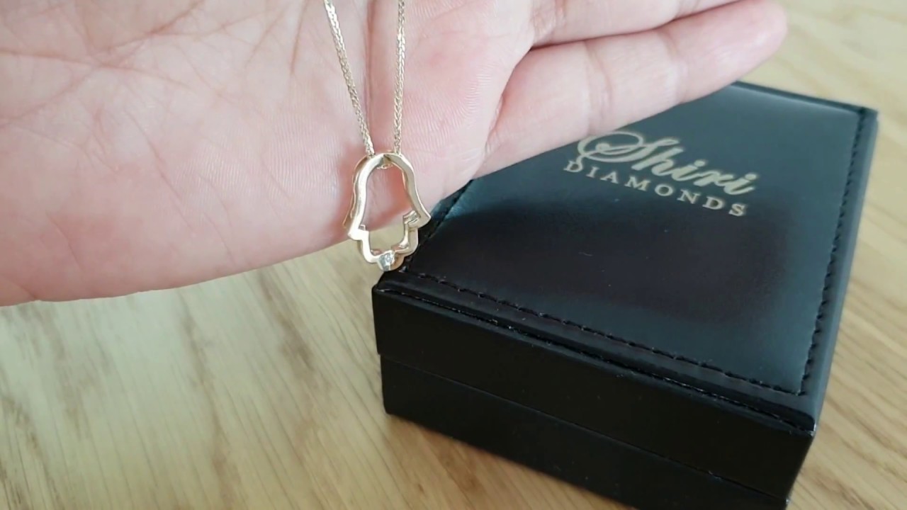 צפו בתליון חמסה מרחף 17.5מ"מ משובץ יהלום – עיצוב ייחודי בתנאים אמיתיים, כולל הברק, הפרופורציות ואיכות הגימור