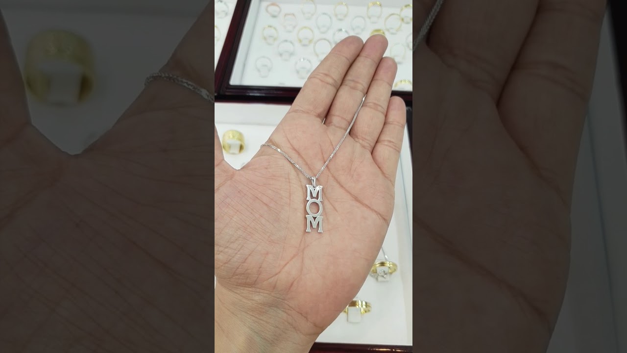 התכשיט שמוצג בוידאו הוא תליון MOM עשוי זהב ומשובץ יהלום בצד