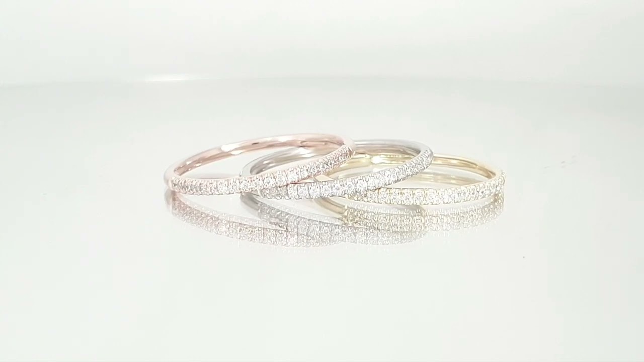 וידאו של טבעת יהלומים דקה משובצת שורה של יהלומים