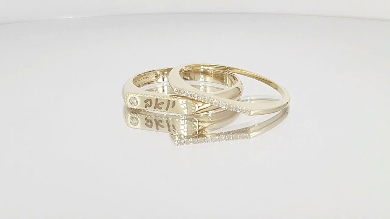 צפו בסט טבעת שם עם יהלום וטבעת יהלומים משלימה - זהב אמיתי בעיצוב עדין ויוקרתי בתנאים אמיתיים, כולל הברק, הפרופורציות ואיכות הגימור