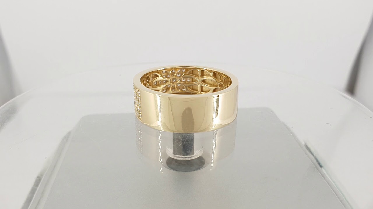 צפו בטבעת יהלומים יוקרתית - זהב יצוק ו 100 יהלומים נוצצים בתנאים אמיתיים, כולל הברק, הפרופורציות ואיכות הגימור
