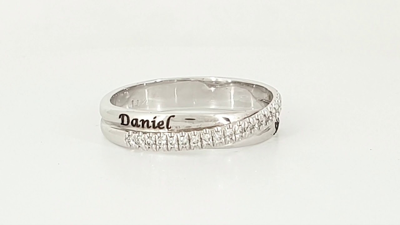 וידאו של טבעת זהב משובצת יהלומים לחריטת שתי שמות