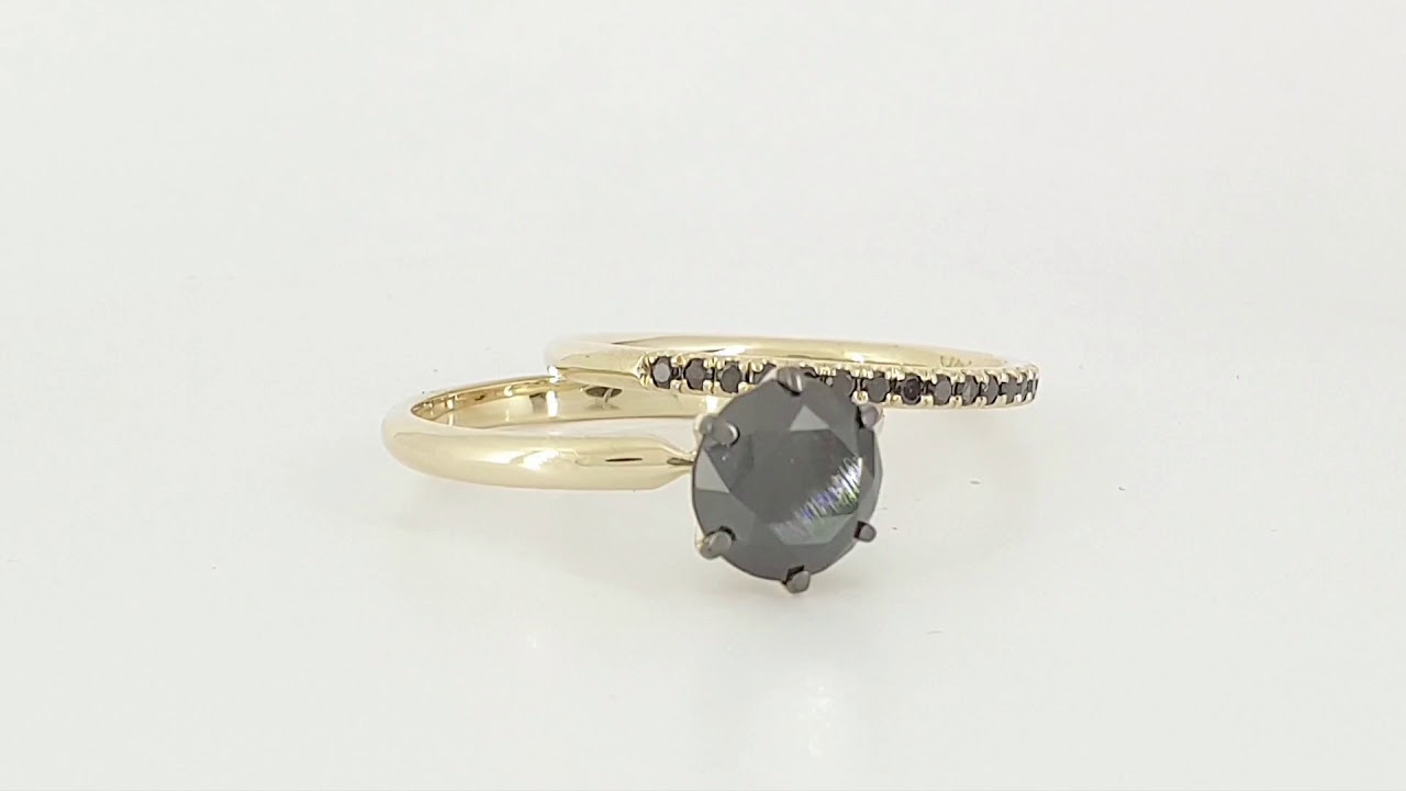 צפו בטבעת זהב משובצת שורה של יהלומים שחורים בתנאים אמיתיים, כולל הברק, הפרופורציות ואיכות הגימור