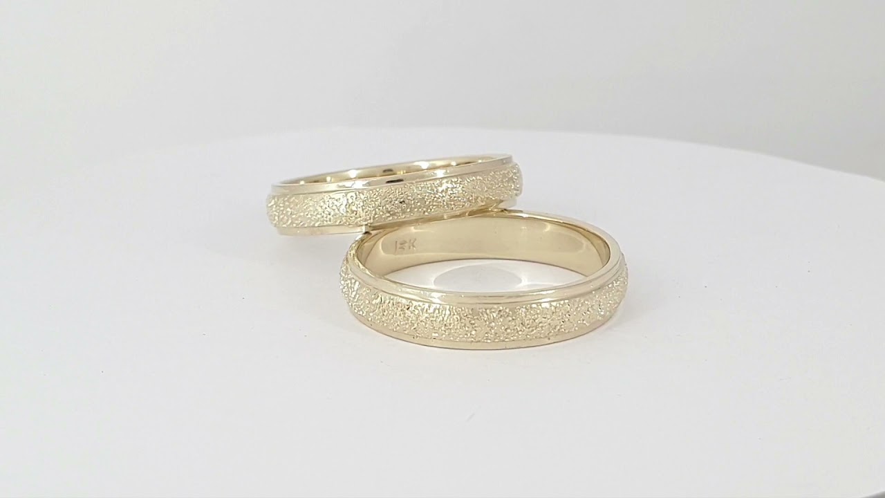 צפו בטבעת נישואין עם נצנצים במרכז ושוליים מבריקים בתנאים אמיתיים, כולל הברק, הפרופורציות ואיכות הגימור